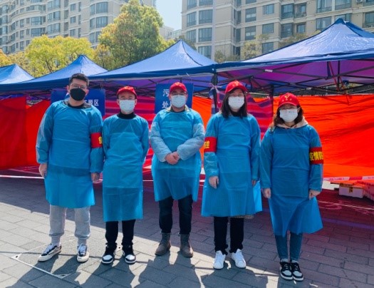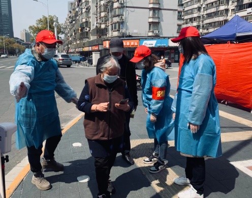 在區(qū)進(jìn)行的四輪全員核酸檢測(cè)的組織現(xiàn)場(chǎng),志愿者們換上藍(lán)色防護(hù)衣,戴好防護(hù)面板,套上紅色防疫袖套,根據(jù)安排分工配合:有進(jìn)行信息核查步驟的,在進(jìn)口處測(cè)量體溫、查驗(yàn)健康碼、行程碼,指導(dǎo)幫助老人操作手機(jī)、協(xié)助居民注冊(cè)核酸采樣碼,問詢疫苗接種情況;有在隊(duì)伍旁維持現(xiàn)場(chǎng)秩序,引導(dǎo)群眾保持安全距離的;有積極進(jìn)行疫情防控知識(shí)宣傳工作的,推廣便民的場(chǎng)所碼、好通碼,宣講疫苗接種……有力促進(jìn)了全員核酸檢測(cè)工作有序、高效、安全開展。