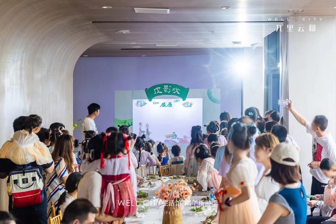 端午節,當登高望遠,或觀龍舟競渡,或遍嘗美食。端午節期間,沿海集團盛和房產九里云和項目舉辦端午樂游活動,坐落于通揚運河與通呂運河的臨時售樓處為陣地,帶來雄黃點額、皮影戲、五彩繩編織等多樣體驗活動,將客戶代表的生活理想與審美追求,融入傳統節日的內容與儀式感中。