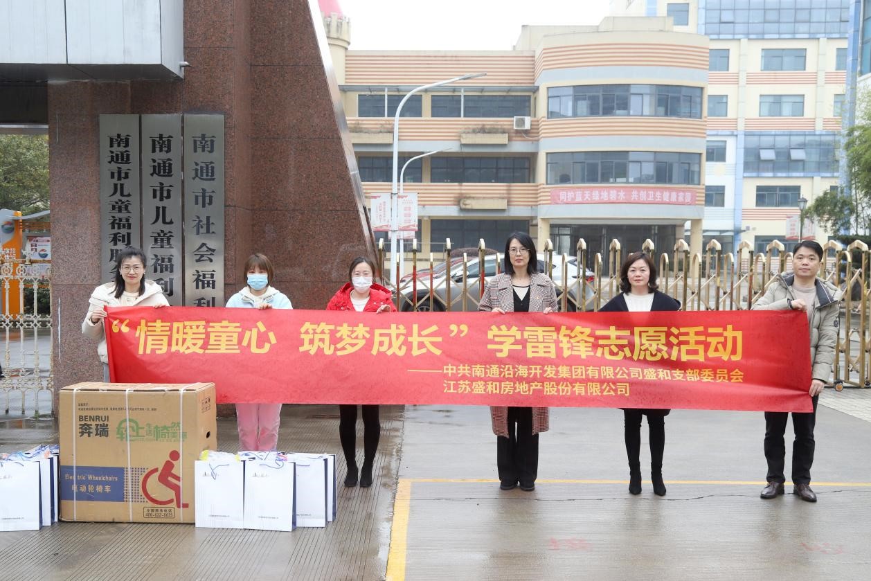 盛和房產黨支部副書記、常務副總周閩珠等一行人員前往南通市兒童福利院開展捐贈慰問活動,為兒童送去電動輪椅及薄款羽絨服、春季運動套裝。